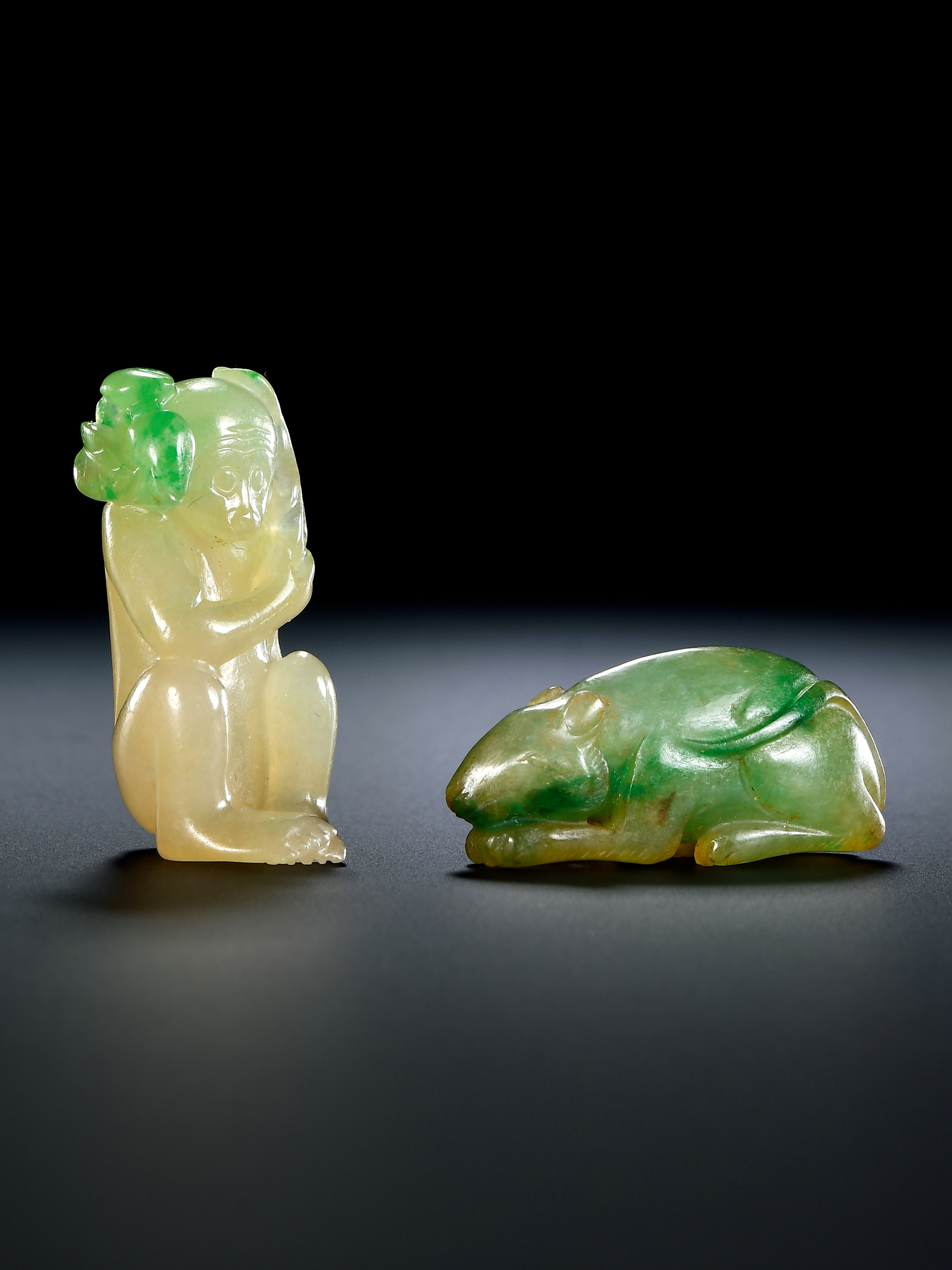 翡翠申猴、翡翠子鼠一组2件