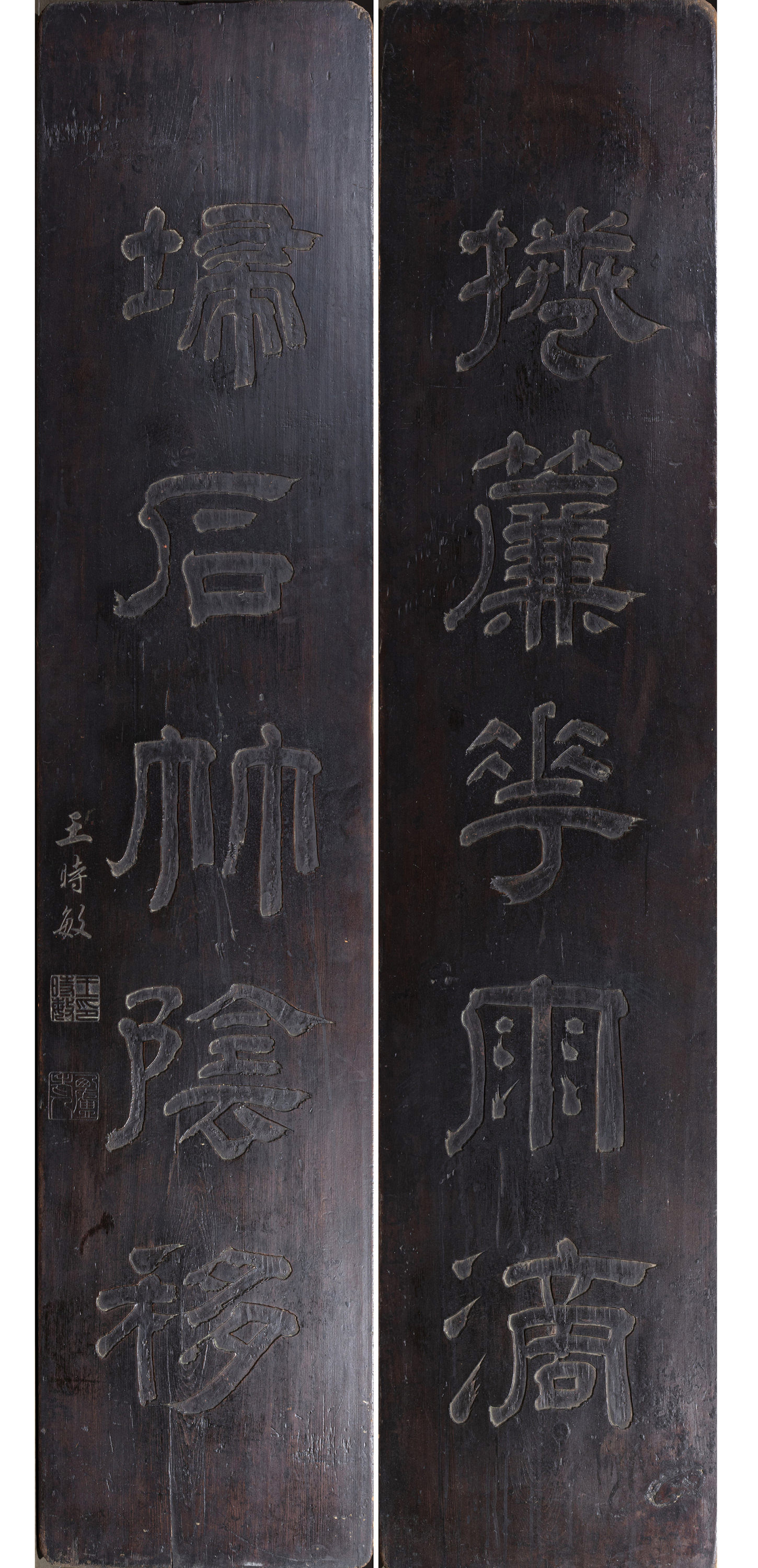 王时敏书法楠木扁对联