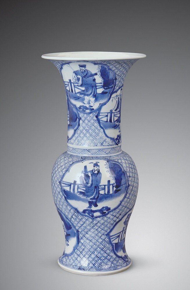 清康熙 青花锦地开光八仙图凤尾尊