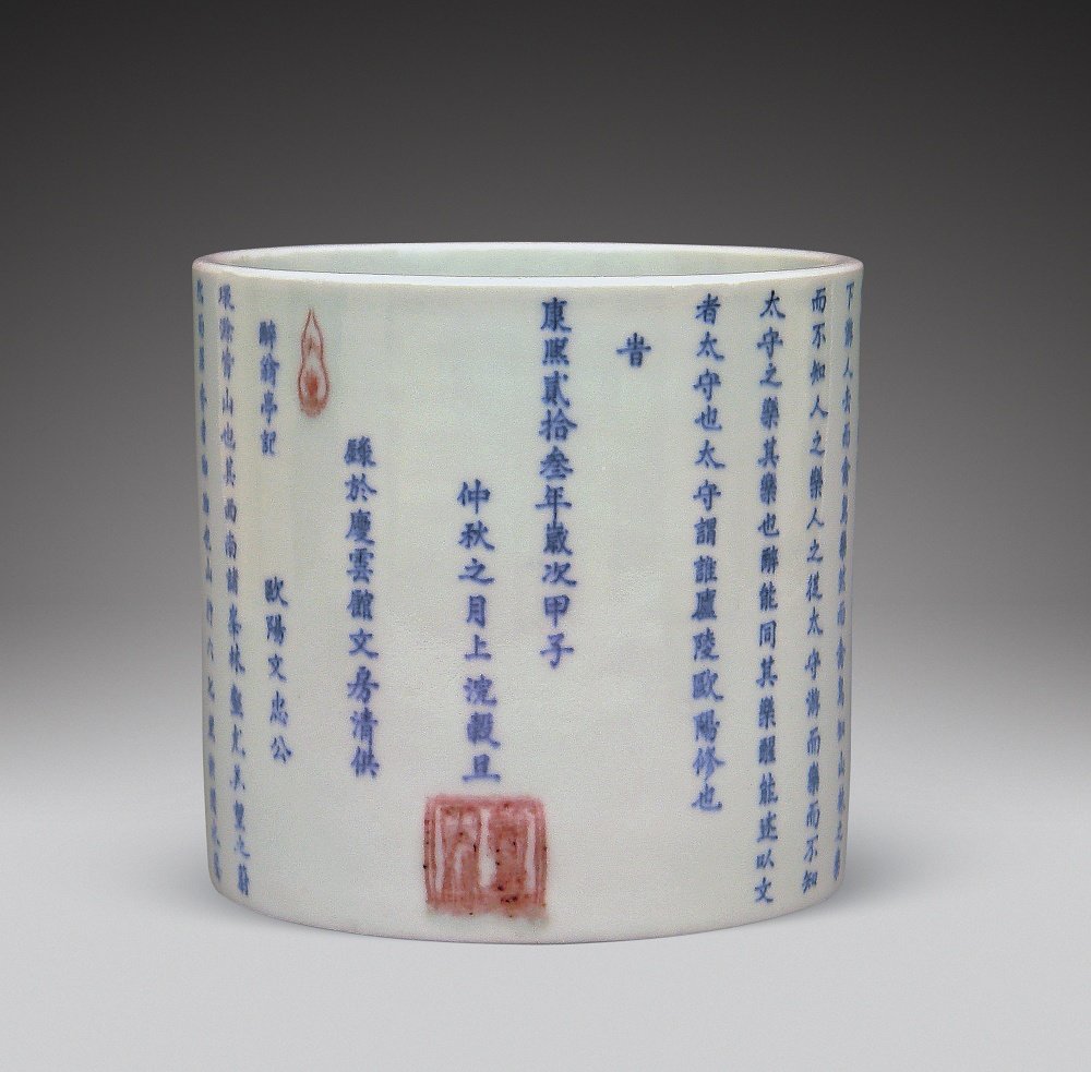 093清康熙 青花楷书“醉翁亭记”笔筒