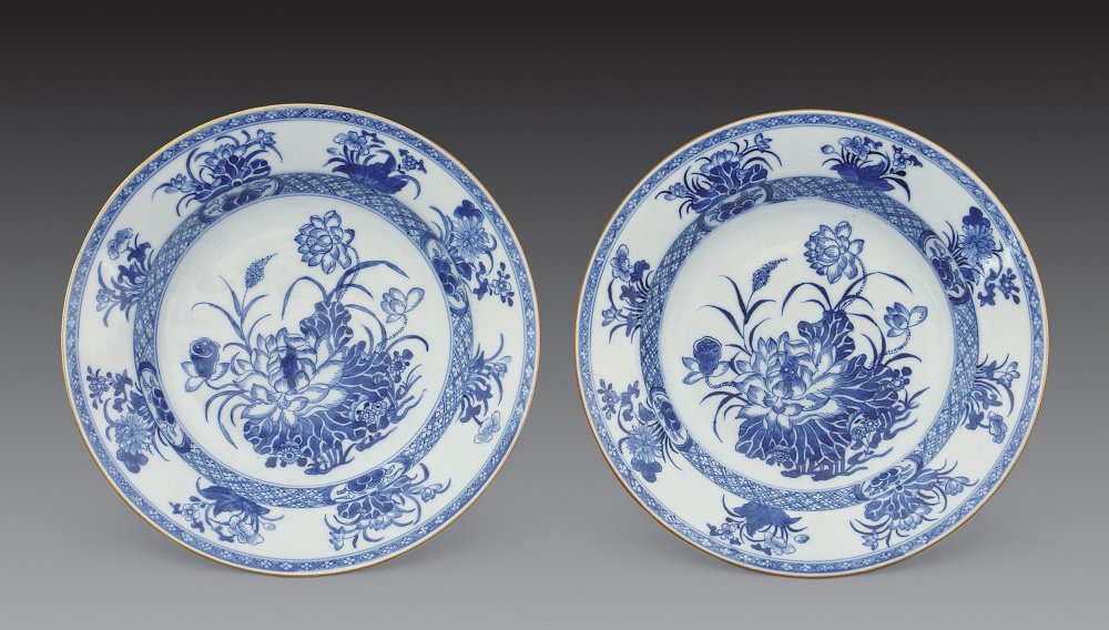 清乾隆 青花花卉大平盘一对