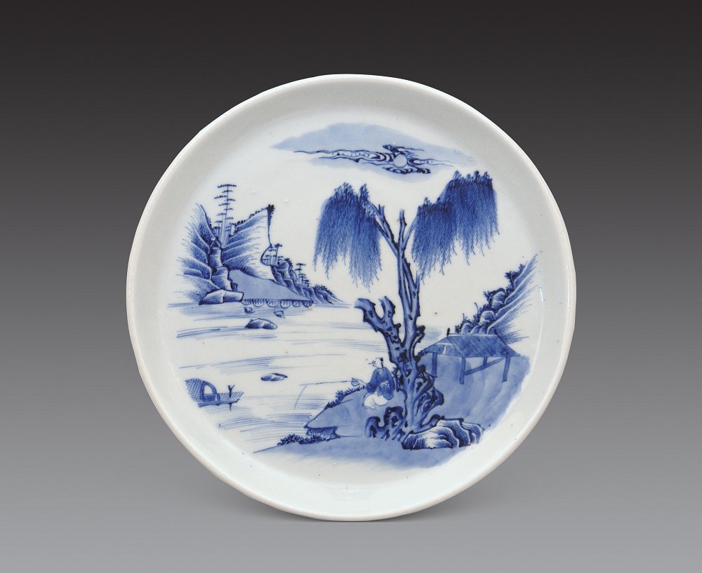 清乾隆 青花山水人物盘