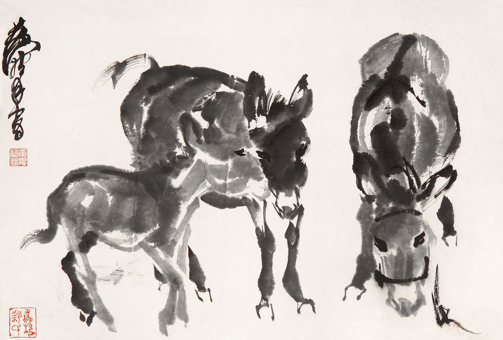 黄胄 三驴图 立轴