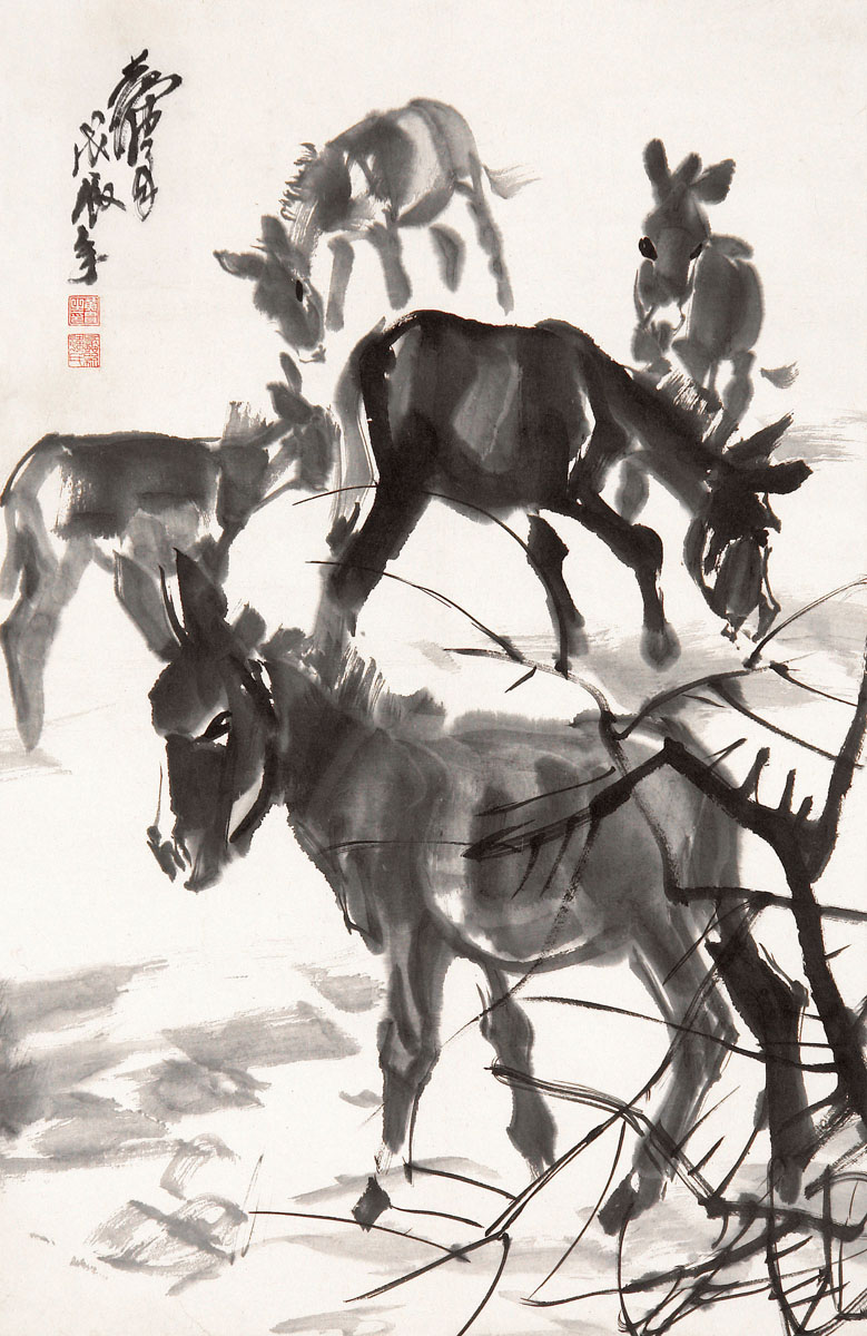 309黄胄 五驴图 立轴